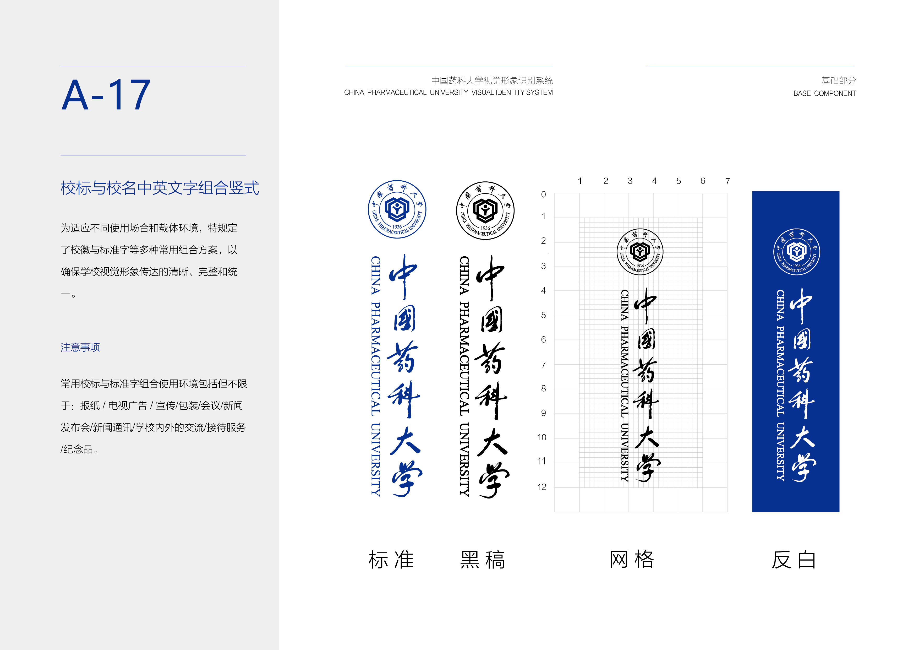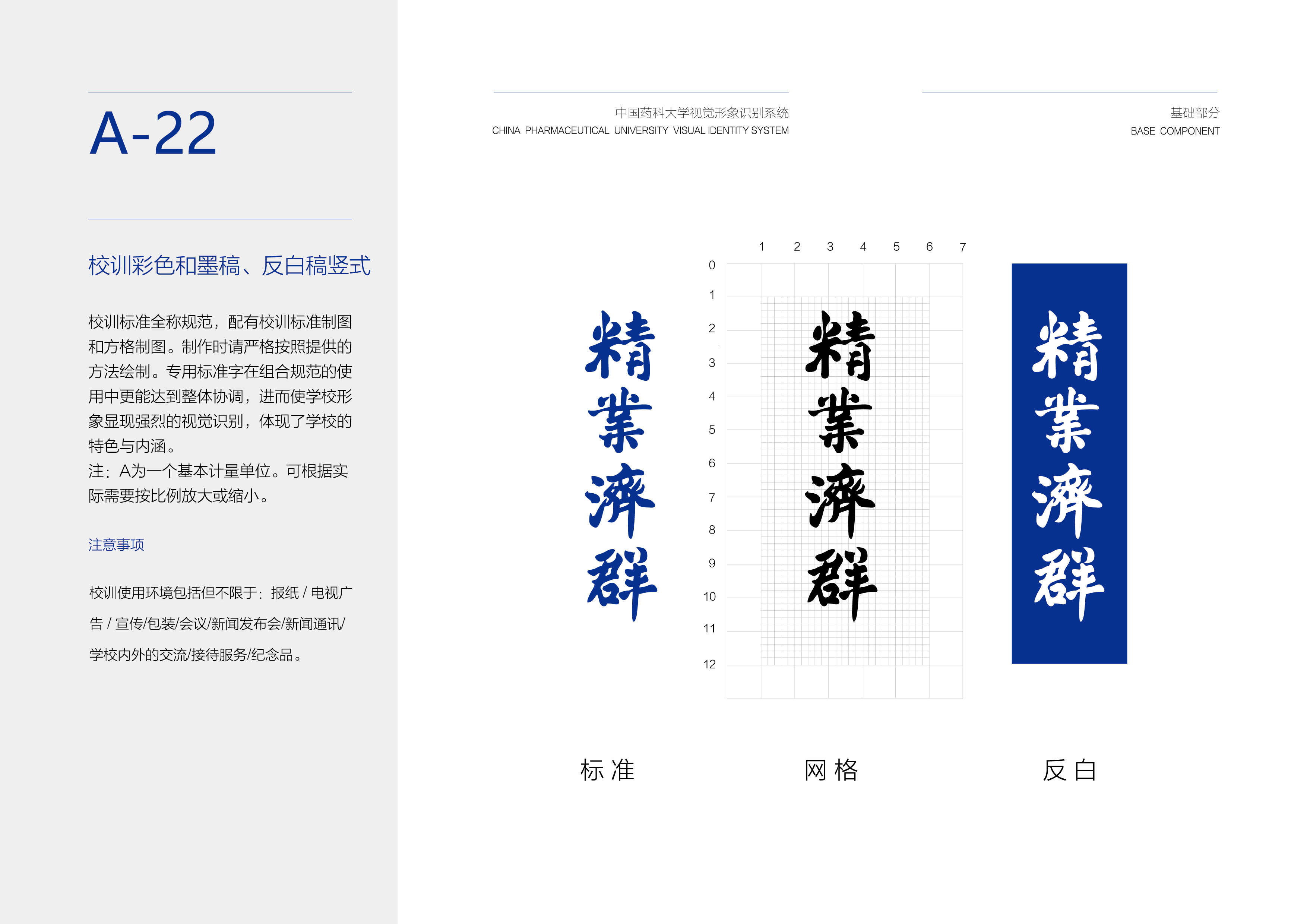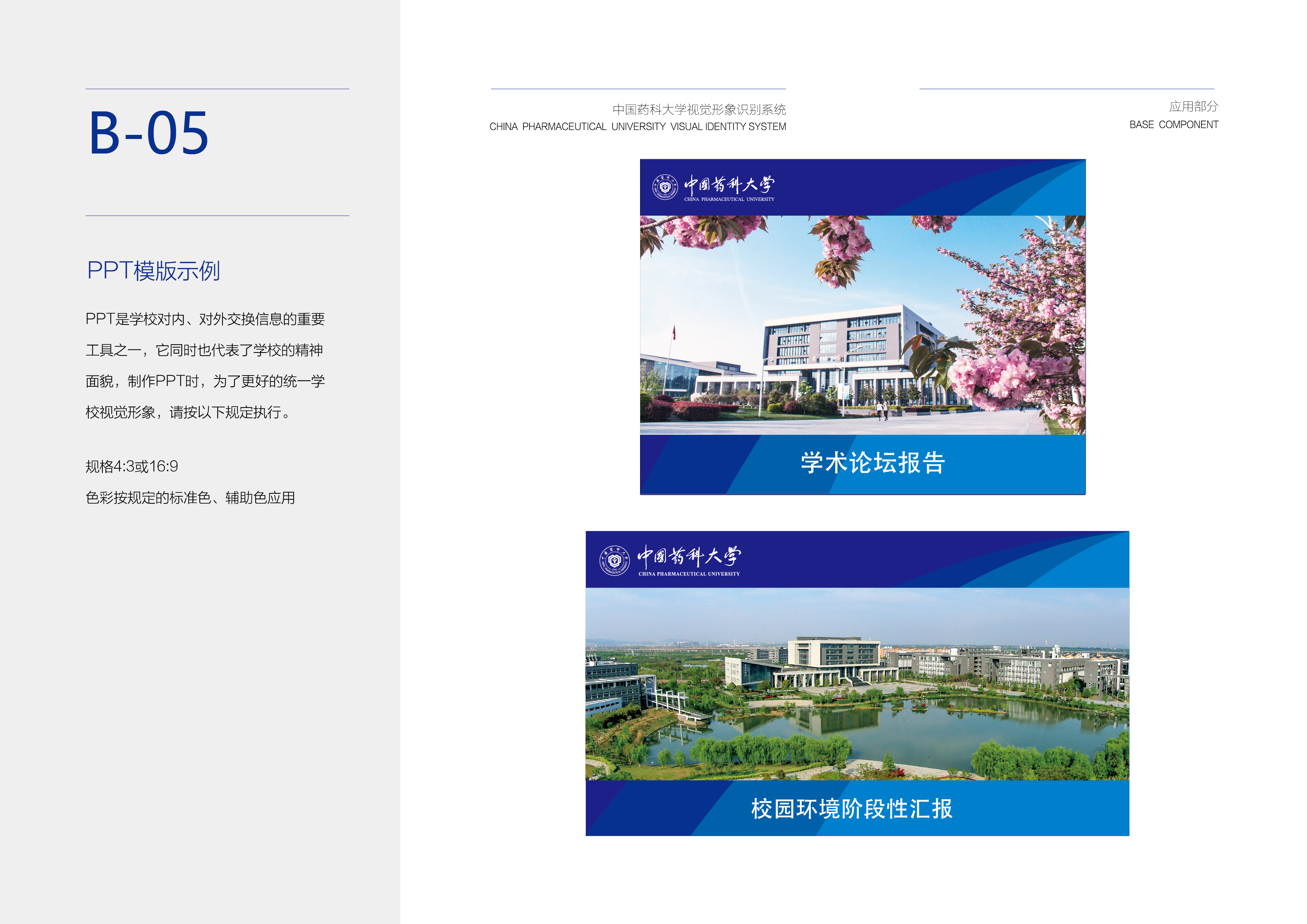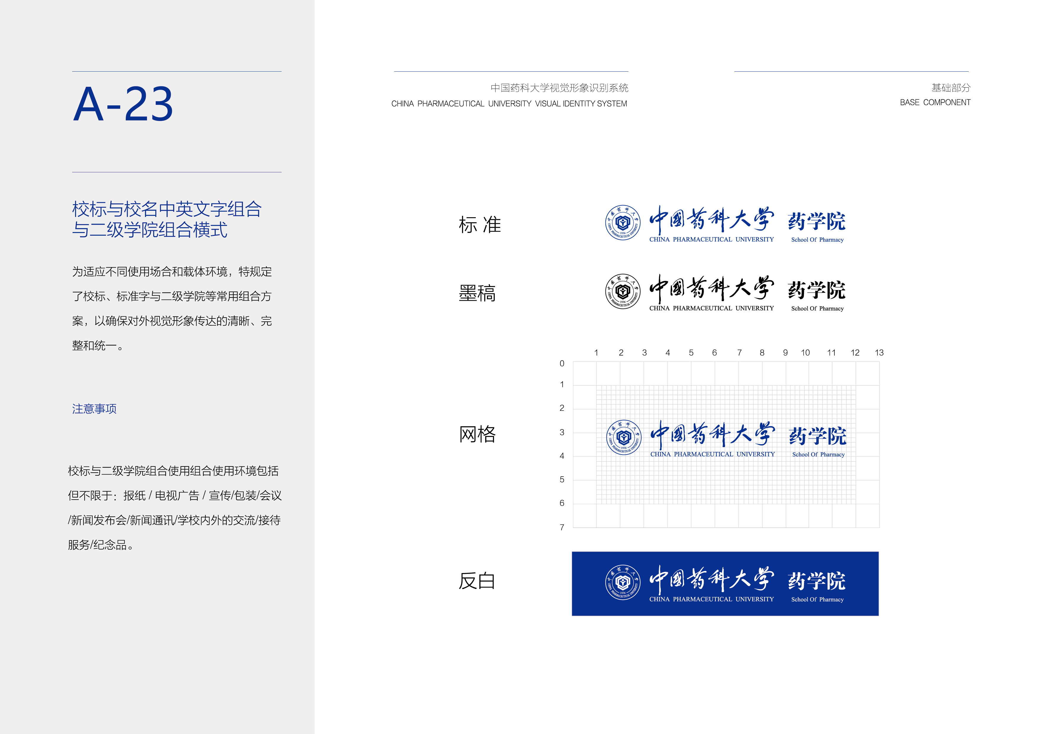 本系统内容分为基础系统和应用系统两大部分。其中基础系统包括校标、标准色、校名中英文标准字体及其组合等基本形象元素的规范性描述,各单位在使用中,应严格遵守。应用系统是基础系统在各个应用领域的使用规范总和,其中有关校标、标准字、标准色的用法也应严格遵守本系统相关规定,但本系统所列有关实际应用物品的形状、款式、材料、工艺等方案仅为示意,各单位在实际应用中可以根据具体情况酌情参考使用。