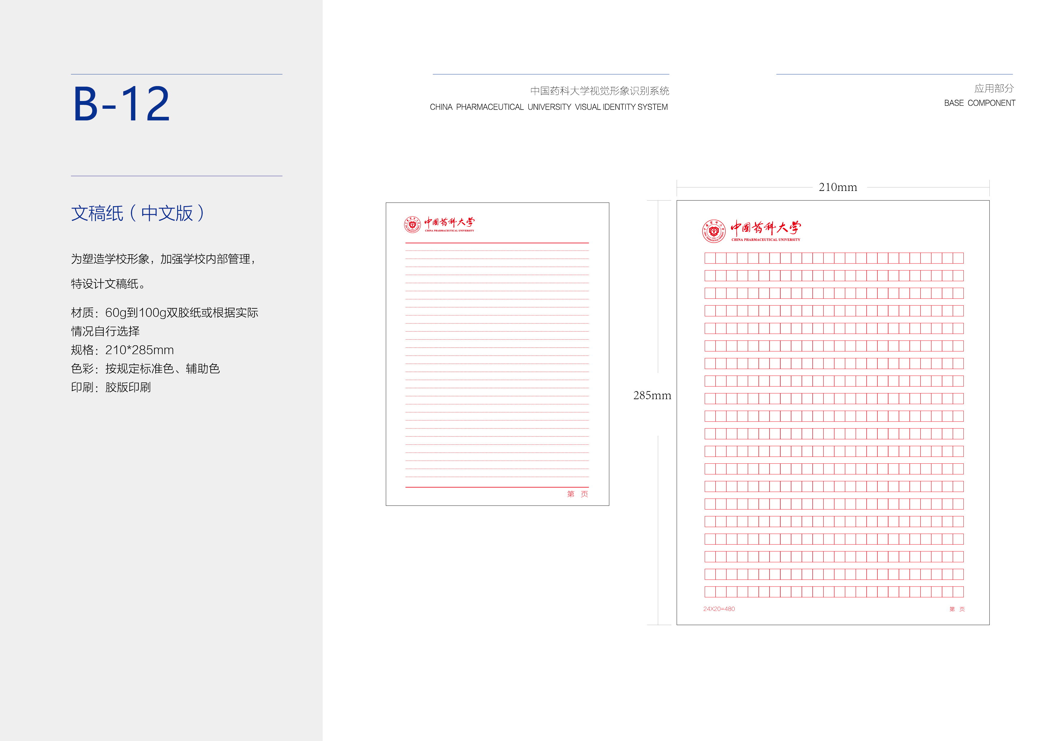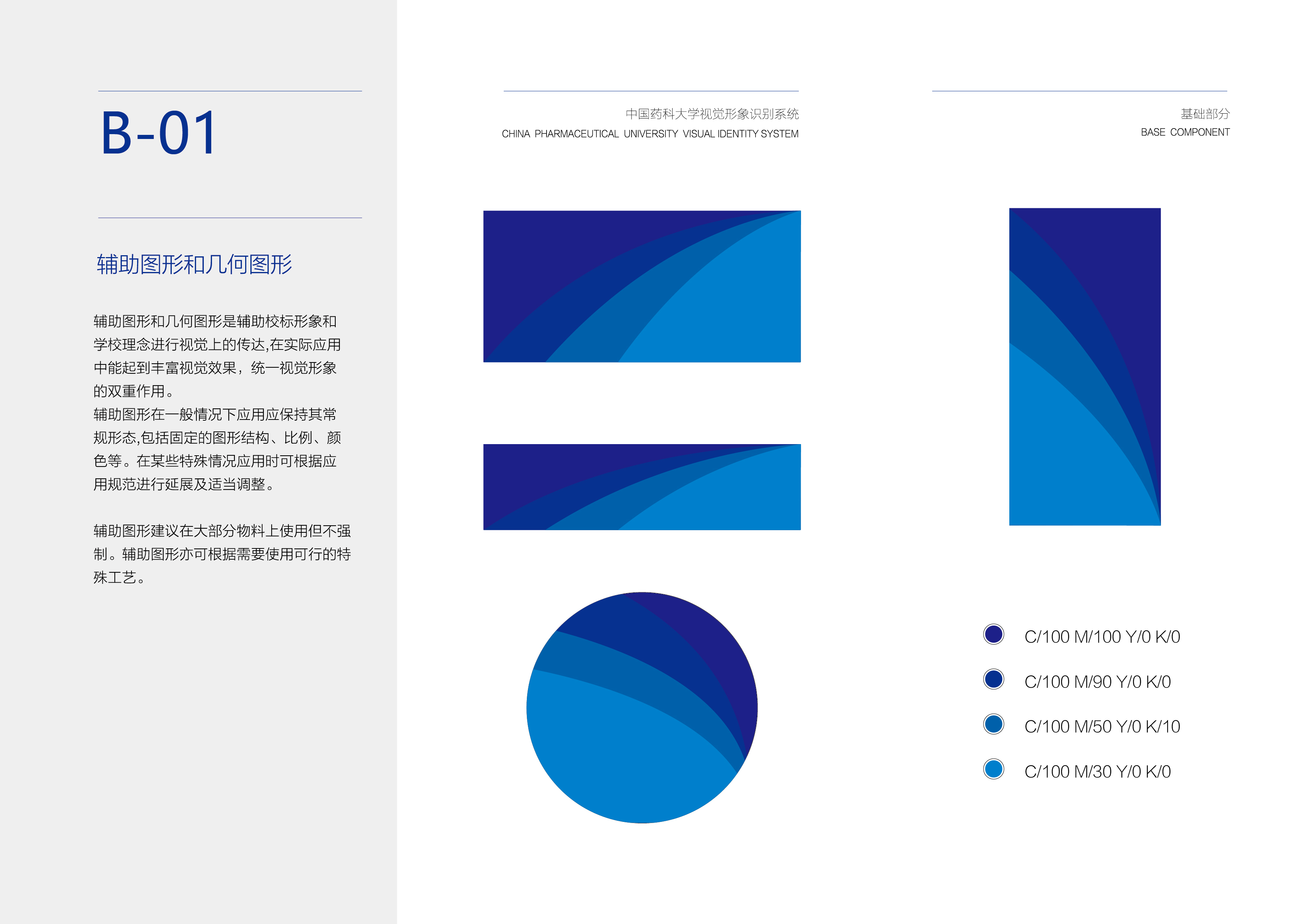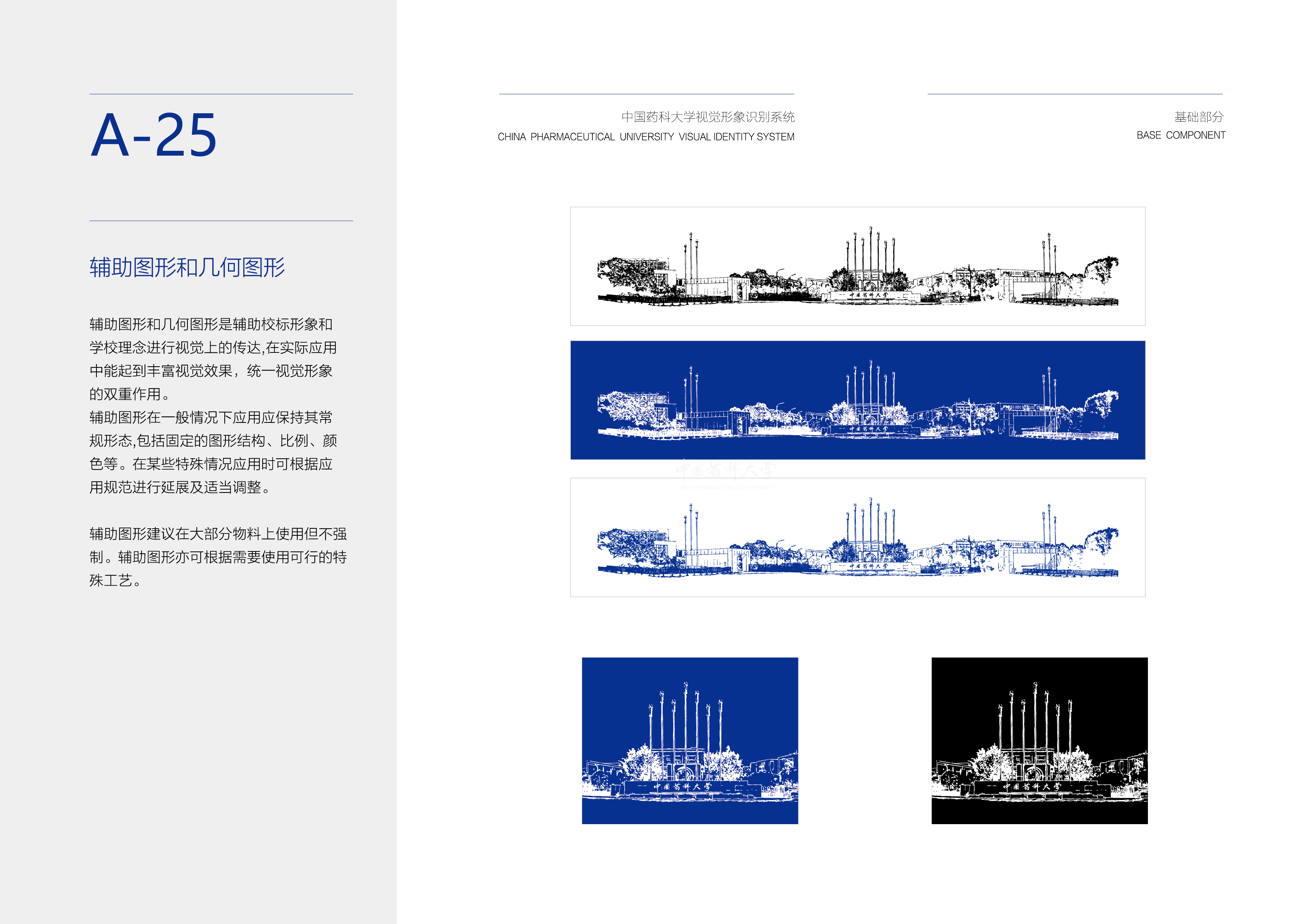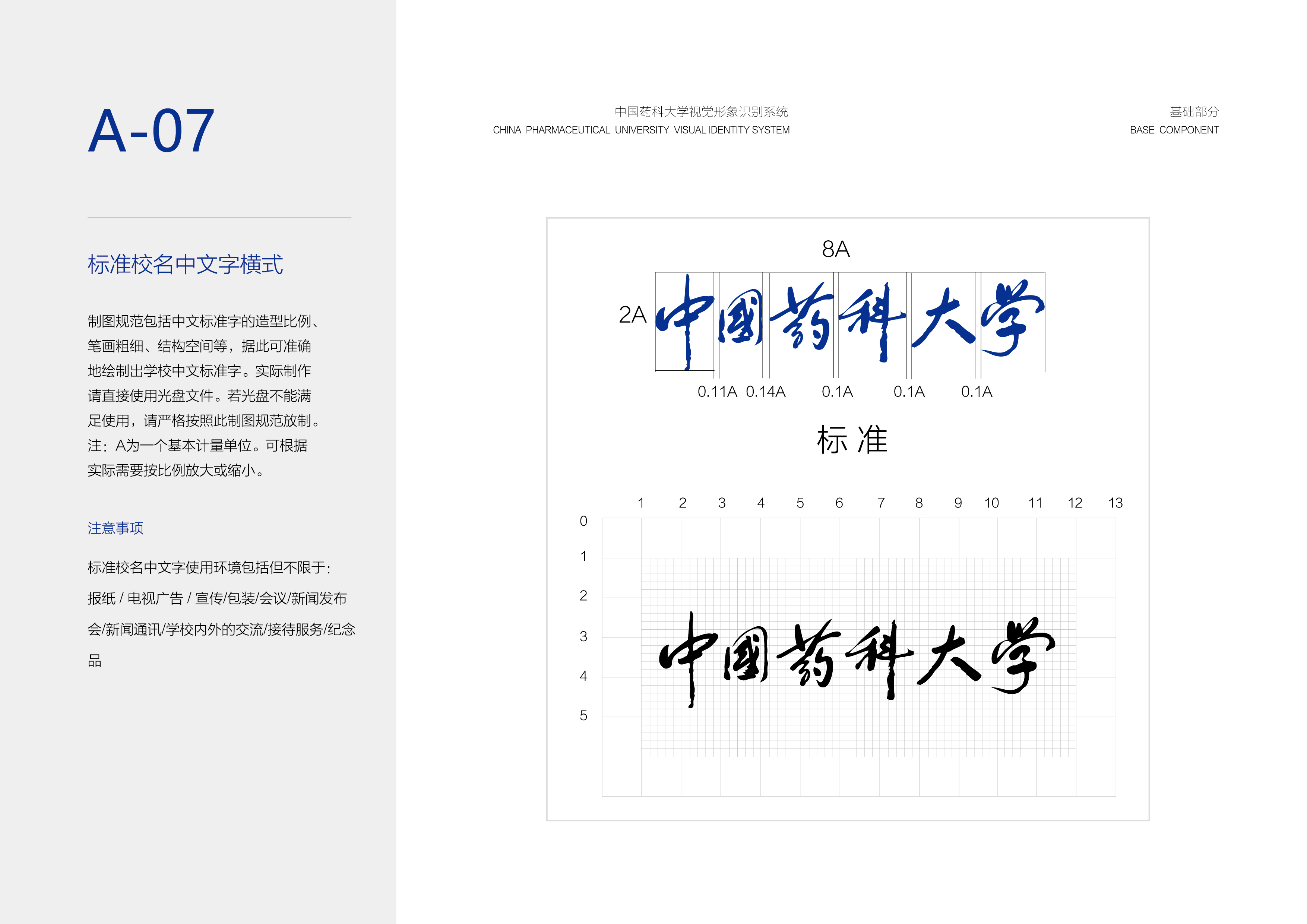 本系统内容分为基础系统和应用系统两大部分。其中基础系统包括校标、标准色、校名中英文标准字体及其组合等基本形象元素的规范性描述,各单位在使用中,应严格遵守。应用系统是基础系统在各个应用领域的使用规范总和,其中有关校标、标准字、标准色的用法也应严格遵守本系统相关规定,但本系统所列有关实际应用物品的形状、款式、材料、工艺等方案仅为示意,各单位在实际应用中可以根据具体情况酌情参考使用。