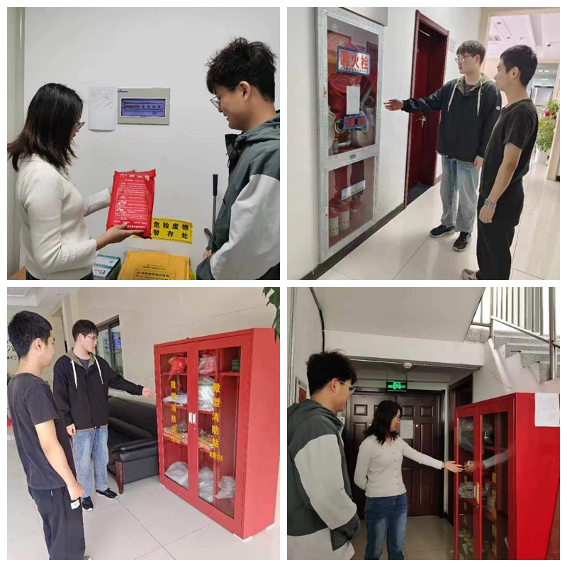 本次教育活动分为消防安全知识竞赛和实验室消防安全检查两部分。知识竞赛采用线上答题的方式,对同学们防火灭火、自救互救、消防法律法规等方面进行全方位综合考察;为检验消防安全防范意识和能力本领,学院组织同学们开展实验室消防安全检查,对灭火器的摆放、使用有效期、消防栓使用等进行安全隐患排查,确保各项安全工作落实到位,保证实验室安全无死角。
