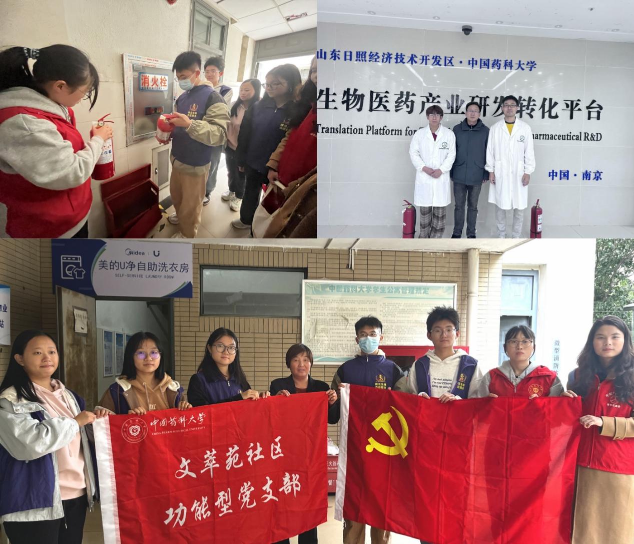 在第33个全国消防日来临之际,为进一步保障校园安全稳定,营造安全和谐的科研、生活环境,近日,我院开展“全民消防,生命至上”校园消防安全主题实践活动。临药领航新青年·党员先锋队和文萃苑社区功能型党支部成员共同参加活动。