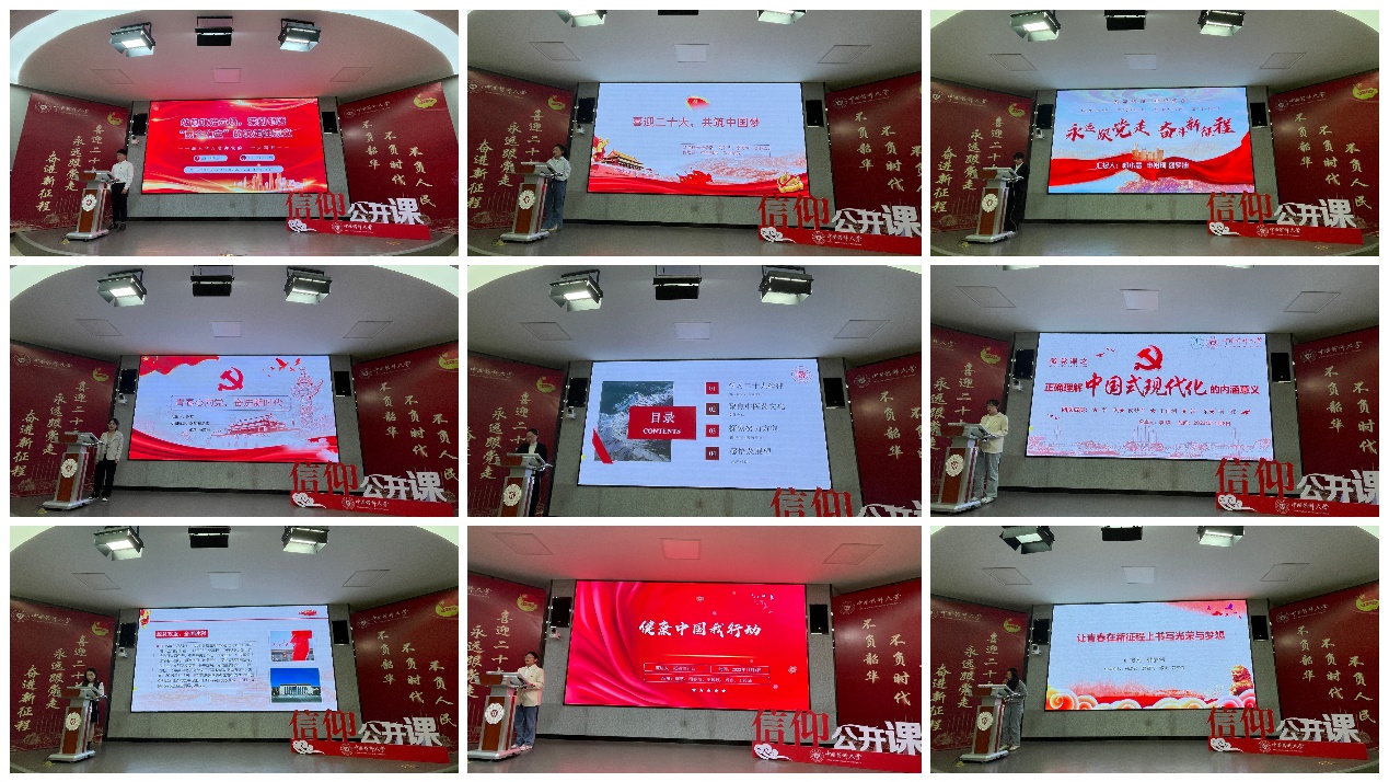 本次比赛围绕学习宣传贯彻党的二十大精神的主题,以党支部、团支部为单位,支部成员之间自由组队、自拟题目,以微课比赛的形式现场开讲。活动现场,9支队伍分别聚焦教育科研、改革开放、健康中国、美丽乡村等不同领域,结合专业特色,融合朗诵、诗歌、沉浸式情景剧、翻转课堂等形式,分享汇报了各自学习党的二十大精神、准确把握新思想新论段的所得所悟。比赛现场高潮迭起,精彩不断,同学用喜闻乐见的形式让党二十大精神入脑入心。经过激烈的角逐,活动最终评选出一等奖1名,二等奖2名,三等奖3名。