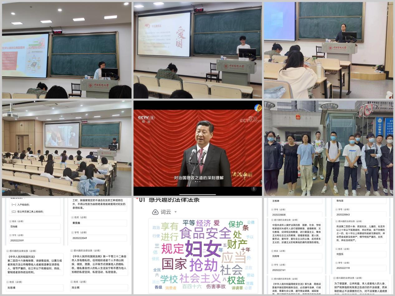 班级同学自主学习《中华人民共和国民法典》、《中华人民共和国网络安全法》、《中华人民共和国刑法》等法律,收集贴近青年大学生的法律法规词条和案例如妇女权益、人身安全、保护未成年人等方面,在班级和同学之间进行打卡分享学习,形成学习互促的浓厚氛围,进一步增强了同学们在法治中国建设征程中青年主人翁的责任感。