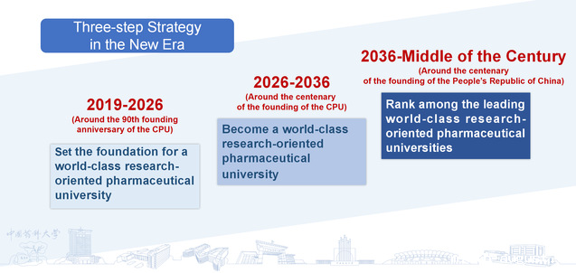 The new era nurtures new opportunities, and new opportunities call for new achievements. In 2019, the school held its 10th Party Congress, further establishing the grand goal of building a world-class research-oriented university with pharmaceutical characteristics and proposing a three-step strategic concept: the first step (by 2026, the 90th anniversary of the school's establishment) is to lay the foundation for the construction of a world-class research-oriented university with pharmaceutical characteristics; The second step (from 2026 to 2036, on the occasion of the 100th anniversary of the founding of the university) is to enter the ranks of world-class research universities with pharmaceutical characteristics; The third step (from 2036 to the mid-20th century, on the occasion of the 100th anniversary of the founding of the People's Republic of China) is to build a world-class research-oriented university with pharmaceutical characteristics.