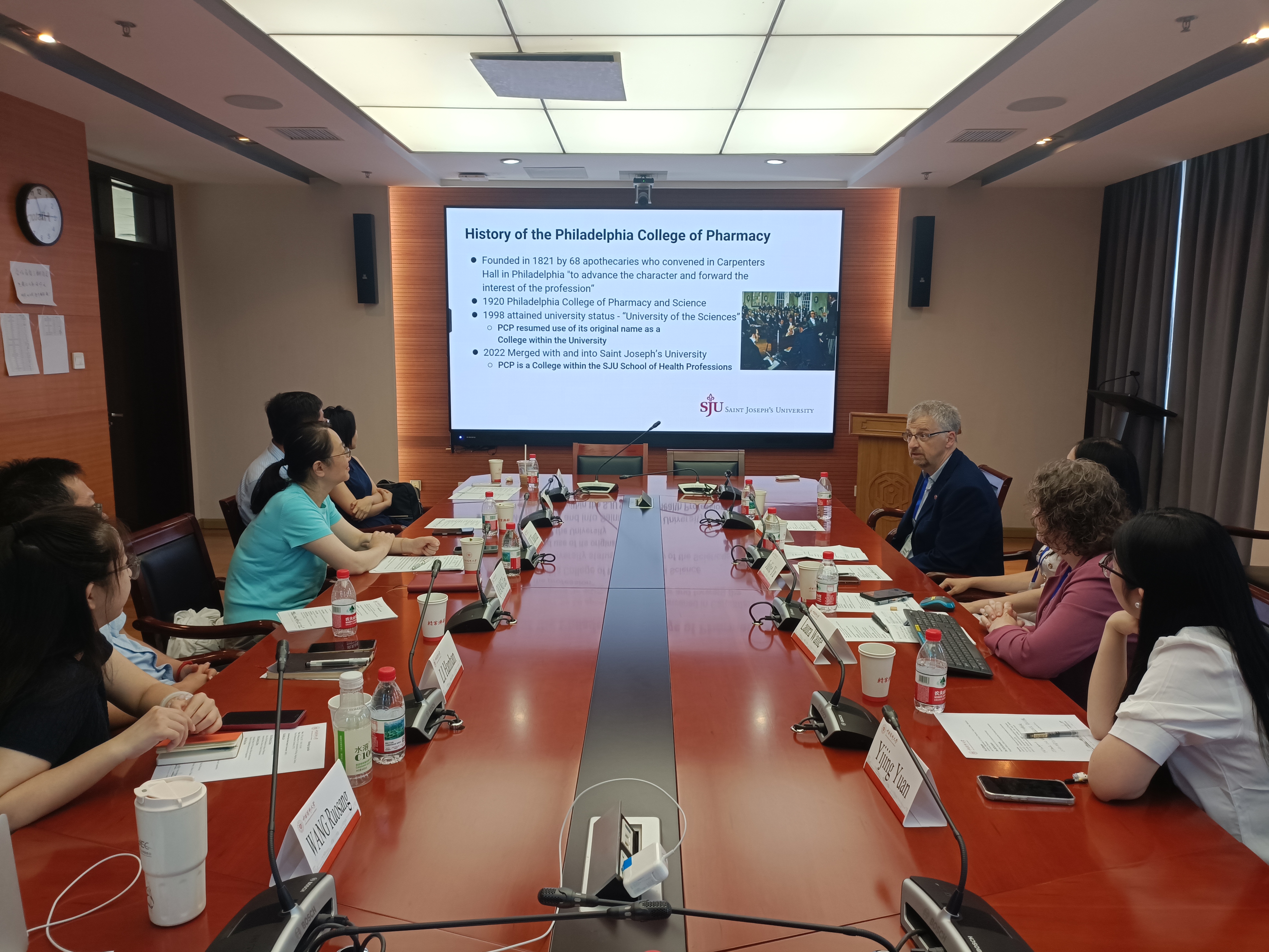 会上,刘潇璇教授对圣约瑟夫大学来宾的来访表示热烈欢迎,强调双方均是历史悠久、声誉斐然的药学院校,可结合双方优势持续开拓合作、携手共进。Julie Yu博士表示两校友谊源远流长,愿大力推进与我校在各方面的交流与合作。随后,双方分别介绍各自学校近况,在深入了解两校药学领域人才的独特培养模式基础上,就PharmD联合培养项目、本硕连读项目、师生短期交流、共同申请国际交流项目等方面交换意见并达成初步合意。
