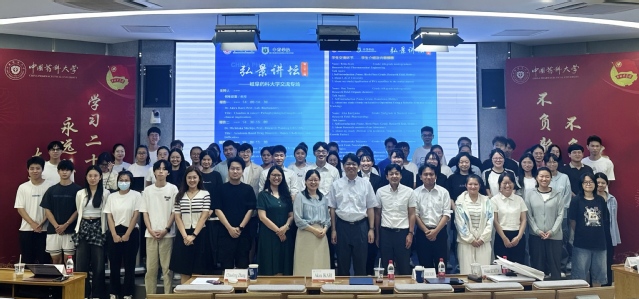 会后,来访团开展学术报告与交流活动,五十里彰教授、七條通孝教授、栗田尚佳副教授分别围绕药学前沿领域作学术报告,岐阜药科大学来访学生分享了各自学习经历与研究内容。随后,双方师生就学习生活情况进行友好交流。