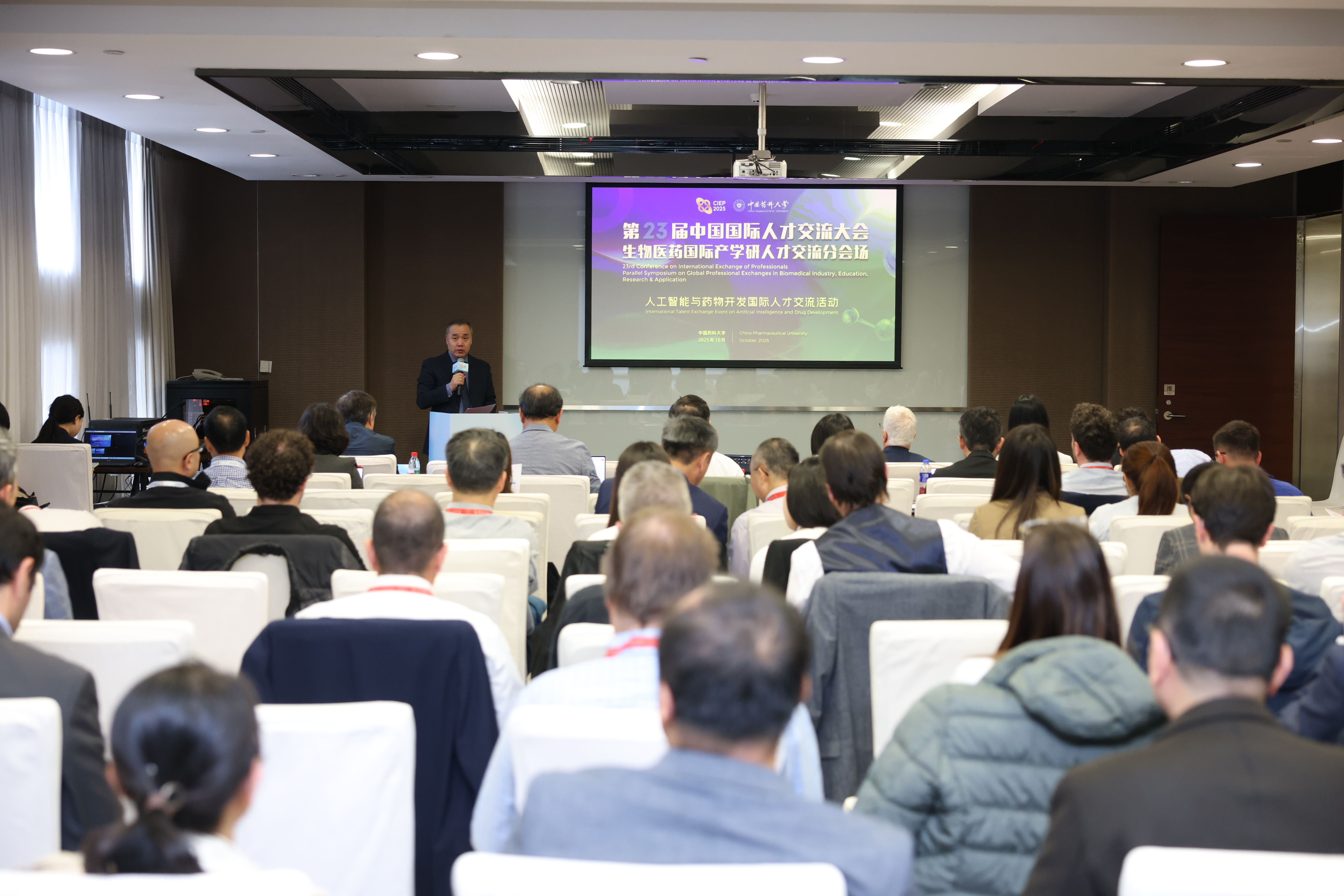在我校承办的“生物医药国际产学研人才交流分会场”中,美国科学院院士NapoleoneFerrara等来自15个国家的42位顶尖外籍专家以及60余位国内院校专家学者和企业代表参加活动。丁锦希在开幕式致辞中指出,作为“中国生物医药人才摇篮”,学校高度重视引智引才工作,积极构建开放包容的创新生态,热忱欢迎海外专家学者走进我校,汇聚全球智慧推动医药科技跨越式发展。分会场设“人工智能与药物开发”“人兽共患病诊断试剂及疫苗研发”“天然产物健康品”三大论坛,与会专家就相关研究作交流。同时设置人才政策宣讲、企业项目路演环节,着力打造引智引才“强磁场”。