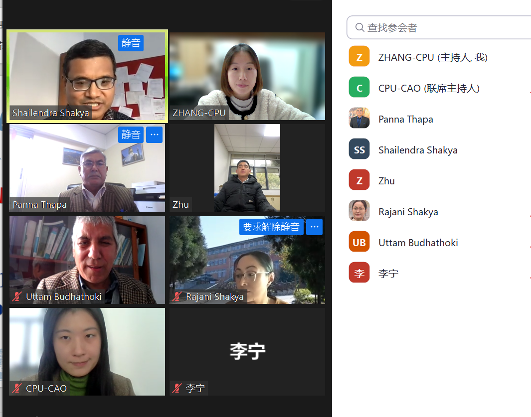 12月11日下午,我校与尼泊尔加德满都大学进行视频会谈。我校外国语学院党委副书记朱志龙、药学院实验中心李宁老师,加德满都大学学术顾问、药学系Panna Thapa教授、药学系主任Uttam Budhathoki教授、Rajani Shakya教授,Shailendra shakya教授(世界杯直播2011届硕士研究生)以及双方相关工作人员参加了此次会谈。