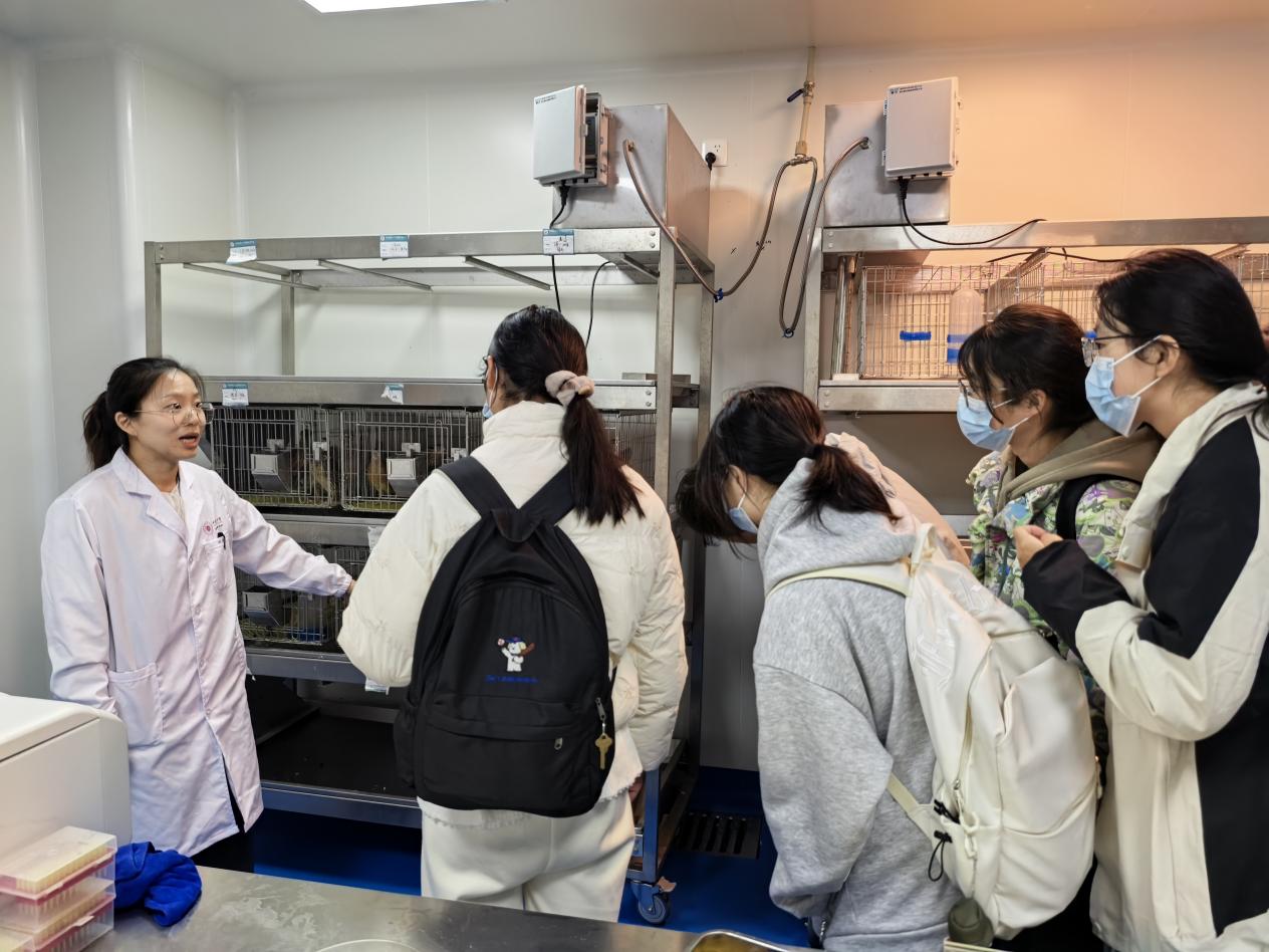 12月10日中午,校党委常委、副校长戴亮与联系班级在校动物实验中心开展交流、参观活动,学院相关负责人、辅导员、工学院制药工程24212104班32名同学共同参加。