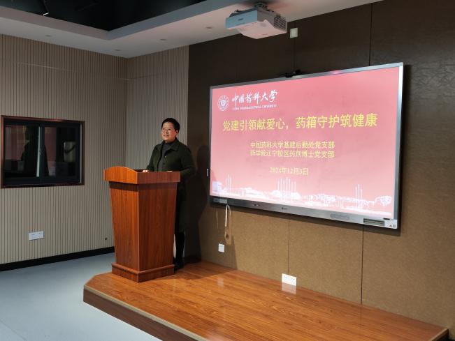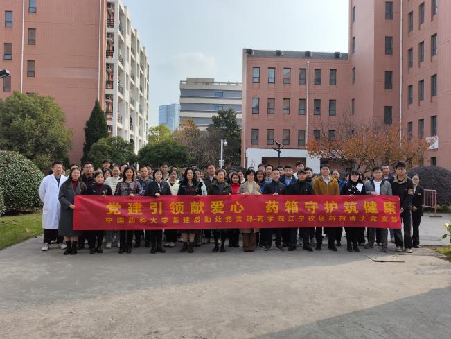 为进一步完善校园安全体系,保障师生生命健康,充分发挥党组织战斗堡垒和党员先进作用,12月3日上午,基建后勤处党支部与药学院江宁校区药剂博士党支部在江宁校区共同举办“党建引领献爱心,药箱守护筑健康”主题活动。药学院党委书记张仕英、机关党委副书记孙立冰出席活动,基建后勤处党支部书记贺丽君、药学院江宁校区药剂博士党支部书记刘宏婷以及两支部全体党员参加活动。