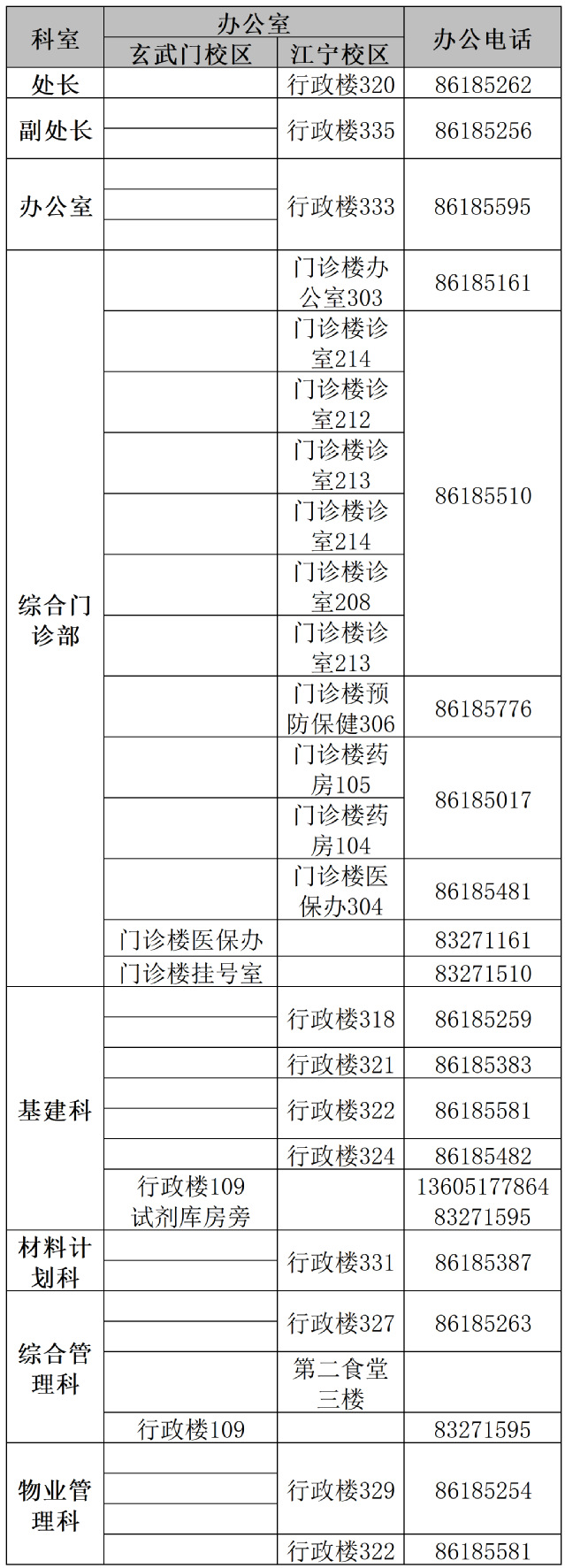 基建后勤处办公地址及电话