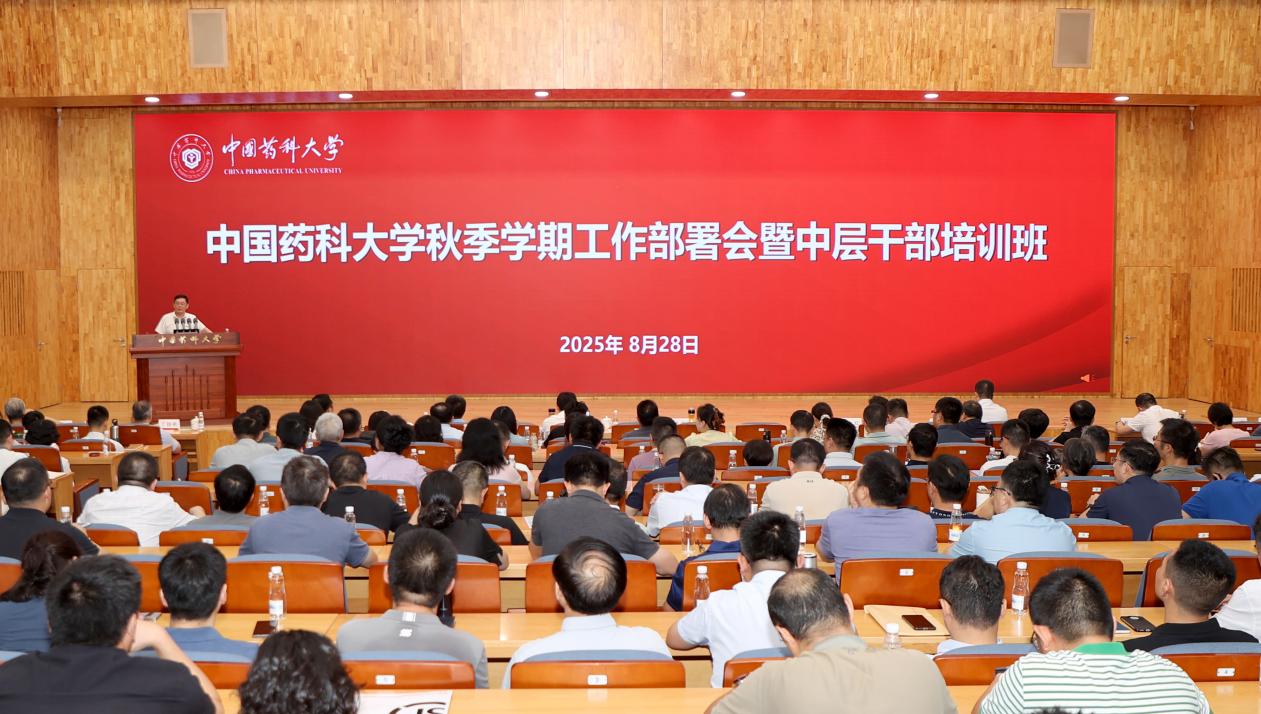 8月28日,我校在江宁校区会议中心召开2025年秋季学期工作部署会暨中层干部培训班。校党委书记戴建君作专题辅导报告,校长郝海平部署秋季学期工作。全体校领导、中层干部、学术委员会委员、青年学术委员会委员、教工党支部书记、学科专业负责人、新药研发赛道负责人、高层次人才及辅导员代表参会。