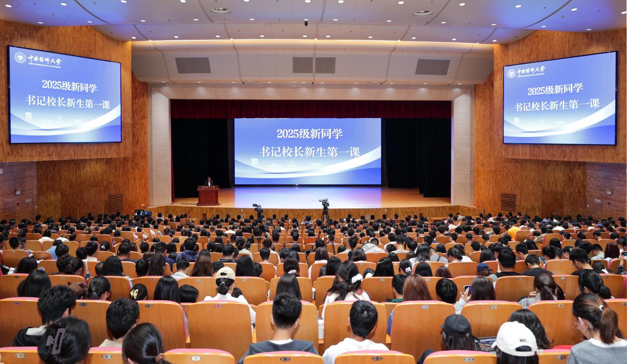 郝海平围绕校史沿革、学科建设、师资队伍、人才培养、科学研究、国际交流等方面向新生强调了我校在药学领域的突出成就与责任担当。他从思想有航向、兴药有体魄、心灵有港湾、实干有动力、环境有品质、条件有改善、校友有归属等维度,详细介绍了建设中国药大人幸福家园的实践行动。