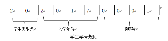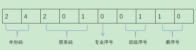 学号由10位数字组成,与校园一卡通号一致,在校期间保持不变,是学生在学校的唯一识别号,其规则如下图所示: