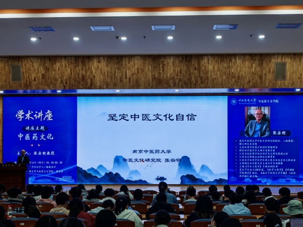 张宗明围绕“什么是中医文化”“中医文化自信的内涵”“自信的来源”以及“如何提升中医文化自信”四个维度,系统阐释了中医文化的核心要义与时代价值。他指出,中医文化是内在价值观念、思维模式与外在行为规范、物质形态的有机统一,并从精神、行为与物质三个层面深入剖析其结构,强调中医药文化自信的核心在于“人本、中和、自然”所蕴含的价值观自信。围绕如何增强中医文化自信,张宗明提出构建“自信—自觉—自强—开放”的认知与实践体系,要积极推动中医药国际教育,善用人工智能等新技术,生动讲好中医药故事。