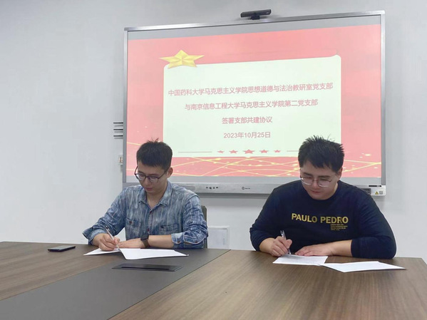 为全面贯彻落实党的二十大精神,促进党支部工作高质量发展,2023年10月25日,我校马克思主义学院德法教研室党支部与南京信息工程大学马克思主义学院第二党支部开展结对共建活动。