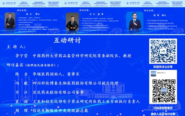 本期云沙龙由世界杯直播药品监管科学研究院执行院长邵蓉教授担任会议主席。会议由世界杯直播药品监管科学研究院常务副院长茅宁莹教授、席晓宇研究员主持。来自工业和信息化部电子第五研究所、四川科伦博泰生物医药股份有限公司、华领医药、贝达药业股份有限公司、信达生物制药的专家学者以及世界杯直播药品监管科学研究院的多位教师共同参与了本次活动。