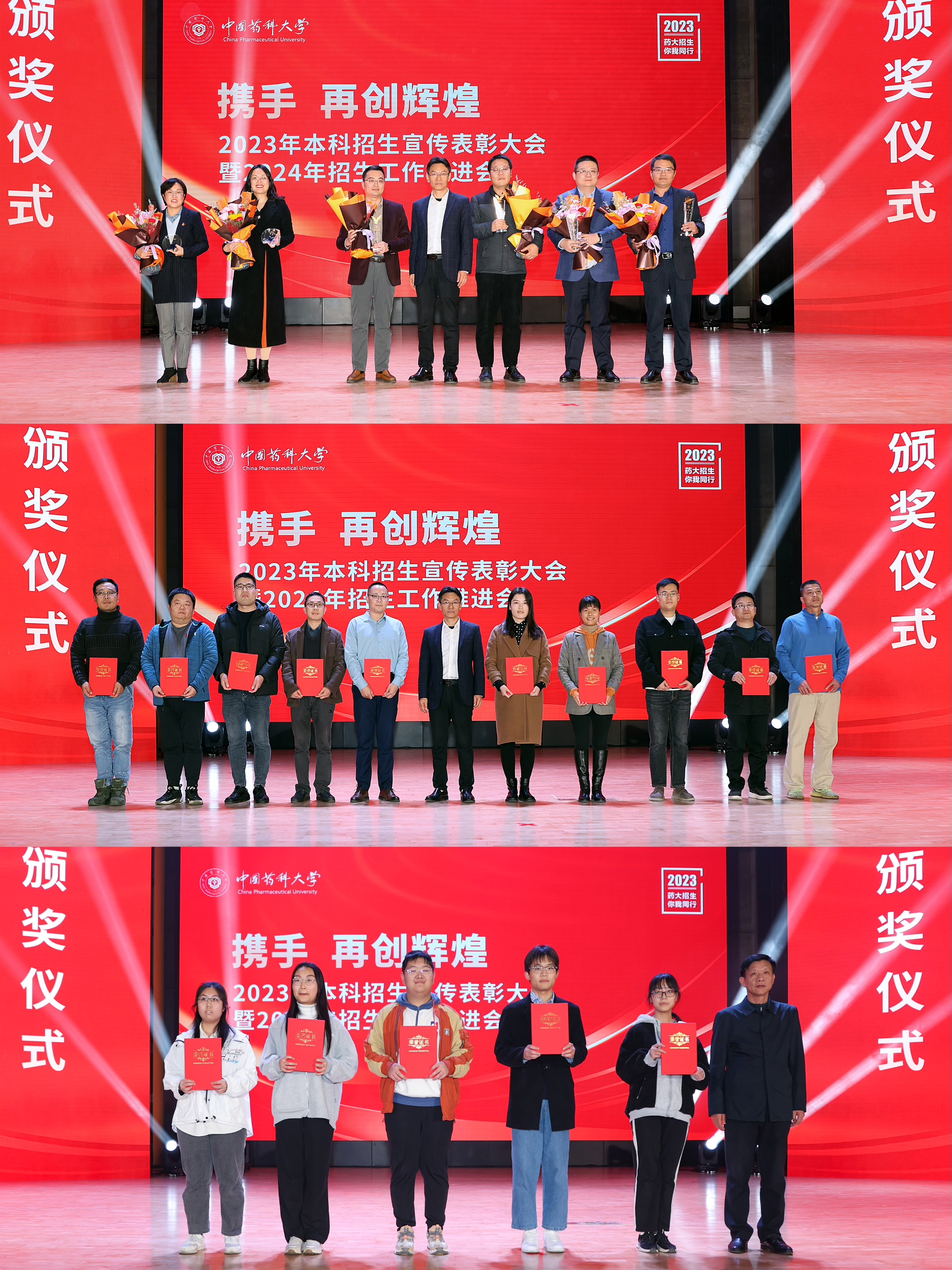 会议伊始,校党委副书记、副校长王正华宣读了《关于表彰2022-2023学年本科招生宣传先进集体和先进个人的决定》。随后,校党委副书记、副校长王正华还为我校学生回访高中母校社会实践活动获奖团队及地区代表颁奖。校长郝海平为本科招生宣传先进个人代表及本科招生宣传先进集体、进步集体、先进组长颁奖,学生代表向获奖的集体代表和先进组长送上鲜花。