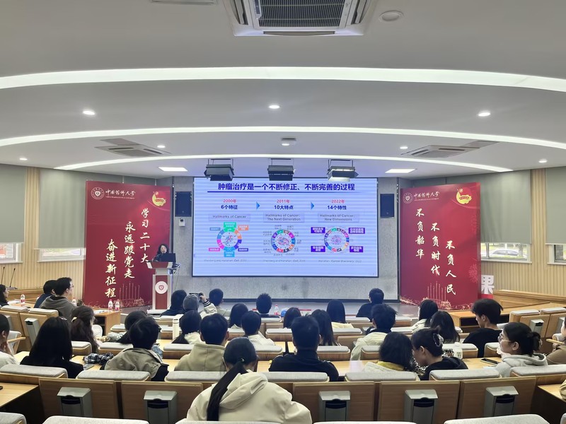 报告会上,黄敏研究员主要阐述了抗肿瘤药物治疗的发展过程以及经历的三大浪潮,分别是化疗、分子靶向治疗以及免疫治疗,重点介绍了聚焦肿瘤代谢异常进行精准治疗的手段。报告会互动交流环节,来自各个学院的老师分享交流,讨论热烈,同学们积极提问。报告会在一片热烈掌声中圆满结束。