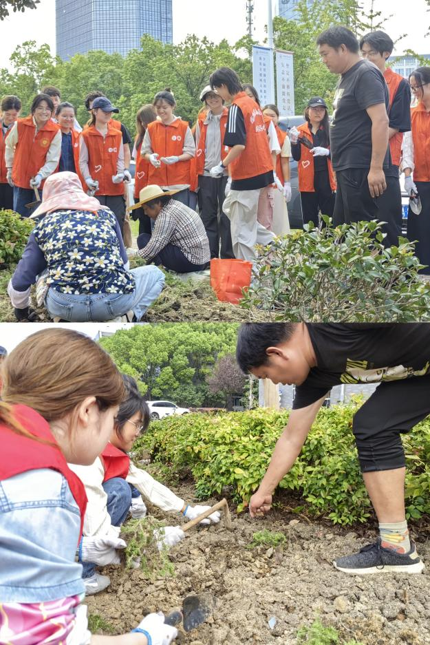 本次实践活动在江宁校区捐赠园金彪先生雕像处及久园开展。活动伊始,国际医药商学院退休教师吴幼萍为在场师生分享了金彪校友在改革开放初期敢闯敢试,之后反哺母校支持办学,与学校共同培养了多位业界领军人物的传奇故事。在1992届医药企业管理专业校友共同集资捐建的久园,她为现场同学们讲述了1992届医药企业管理专业校友在校求学经历、毕业后励精图治,在医药行业奋力拼搏的故事。最后,她勉励同学们珍惜在校时光,扎实掌握专业知识,向校友们学习,脚踏实地苦干实干,致力成就卓越人生。校友故事分享之后,同学们在基建后勤处陈嘉裔老师的带领下开展久园养护活动,将一棵棵芝樱种入泥土,等待来年万紫千红。虽然天气微热,但大家依然干得热火朝天。