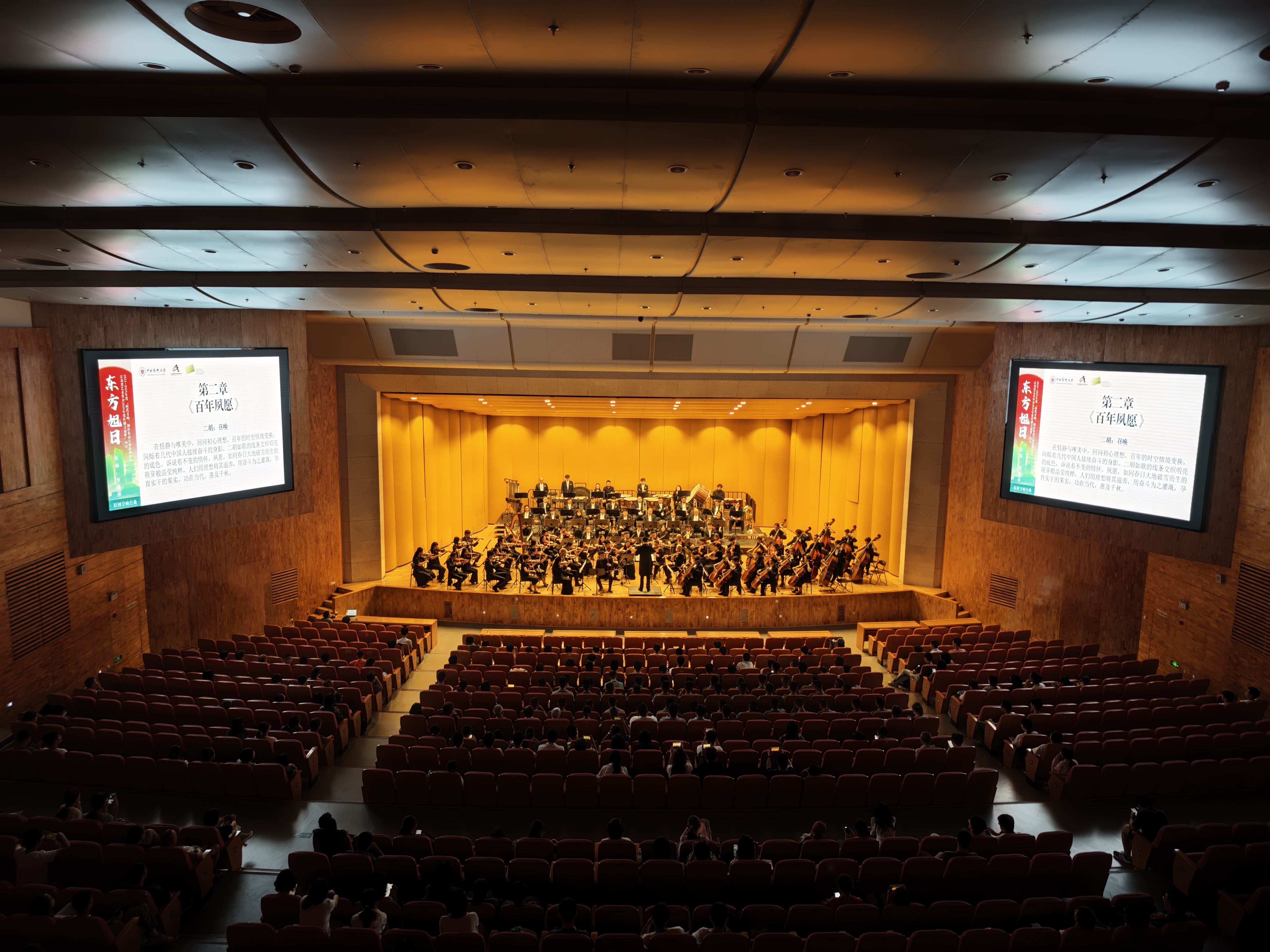 910日晚,为纪念抗战胜利80周年,同时也为庆祝第41个教师节,校团委邀请江苏交响乐团在我校江宁校区大礼堂,为广大师生献上原创交响套曲《东方旭日》。各学院师生及全体带训教官500余人现场欣赏音乐会。