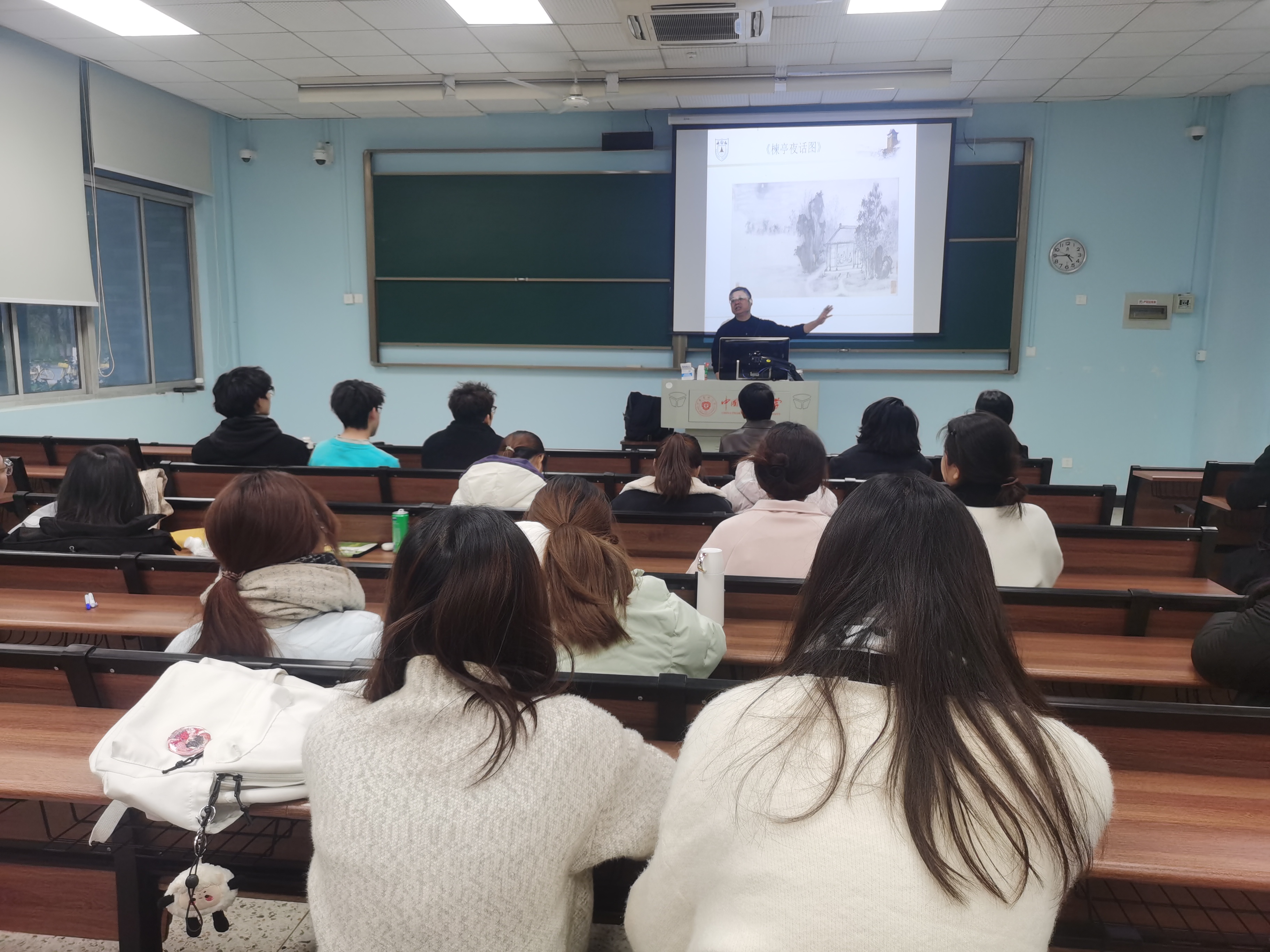 苗怀明教授从曹家与南京的结缘、曹家在南京、《红楼梦》中的南京元素和南京城中的红楼遗迹四个方面讲解了《红楼梦》与南京的前世今生。苗教授指出,南京是《红楼梦》的故乡,是孕育《红楼梦》的摇篮。他通过丰富的图文资料,梳理了南京图书馆、江宁织造博物馆、曹雪芹纪念馆、随园、治隆唐宋碑、香林寺等十几处与《红楼梦》相关的文学遗迹,生动讲述了曹雪芹家族在南京从盛到衰的整个过程,引领听众走进曹翁笔下的世界,探索六朝古都南京与传世名著《红楼梦》的不解之缘。讲座结束后,苗教授同现场师生进行了交流探讨。