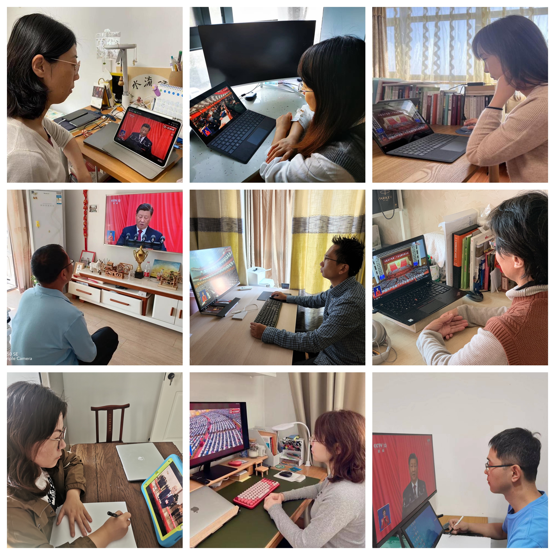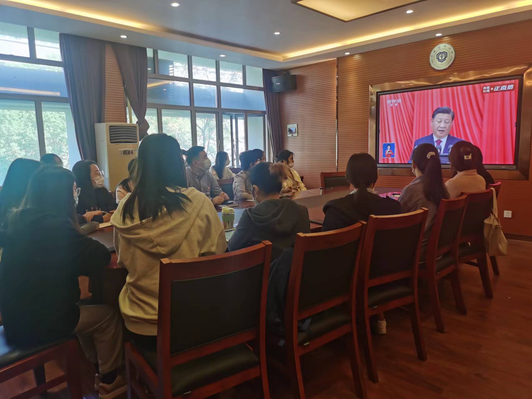 院党委书记付蕾、副书记杨波与学院入党积极分子一起,在经管文楼306会议室集中观看了大会,并在会后展开了讨论;其他师生在家里、宿舍、办公室等地观看,同时通过线上会议分享了心得。