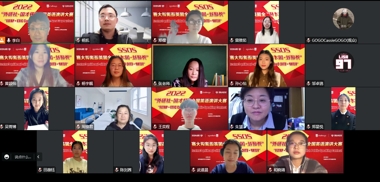 10月12日晚,2022“外研社· 国才杯”全国英语演讲大赛世界杯直播校园初赛成功举行。本次比赛以线上形式进行,外国语学院朱慧、张红花、杨凯、周雅君及李白五位老师应邀出席并担任了此次比赛的评委。