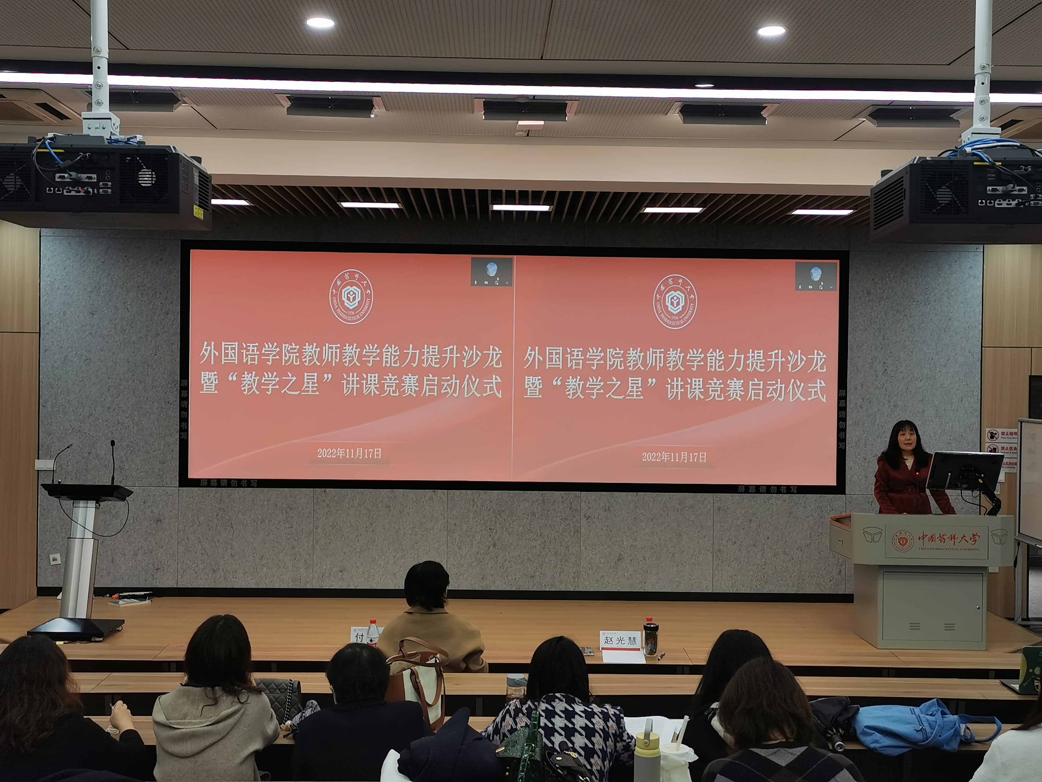 11月17日下午,外国语学院教师教学能力提升沙龙在江宁校区教学楼D212成功举办。本次沙龙采用线上线下相结合的方式,曾多次荣获“外研社杯”和“外教社杯”教学大赛省、国赛大奖的河海大学外国语学院何佳老师和南京师范大学外国语学院季璇老师应邀作交流分享。活动由外国语学院院长赵光慧主持。