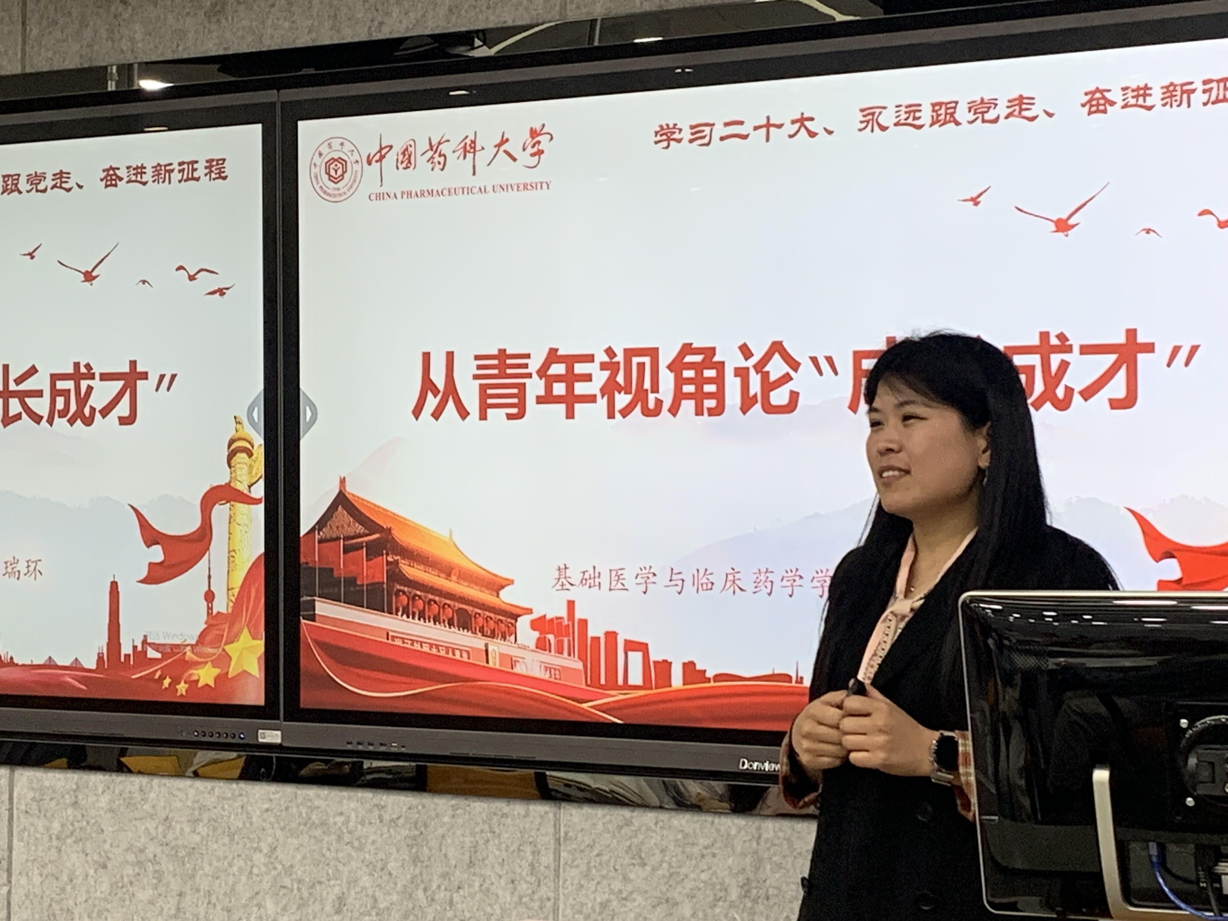 首先,基础医学与临床药学学院团委书记刘瑞环老师为同学们带来了本次学生骨干训练营的最后一堂课程。刘瑞环老师以《从青年视角论成长成才》为题,围绕“培养什么人,怎样培养人,为谁培养人”这一根本问题,深入浅出地讲解了高等教育的根本目的,鼓励在座的团学骨干们坚定不移听党话、跟党走,不断用党的最新理论武装自己,珍惜良好学习机会,用实际行动践行“请党放心,强国有我”的青春誓言。