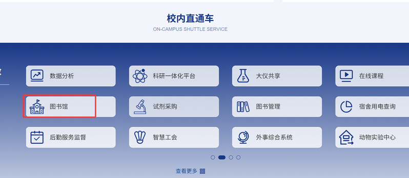 3.如需下载图书馆电子资源,可点击信息门户“校内直通车”中的“图书馆”图标。