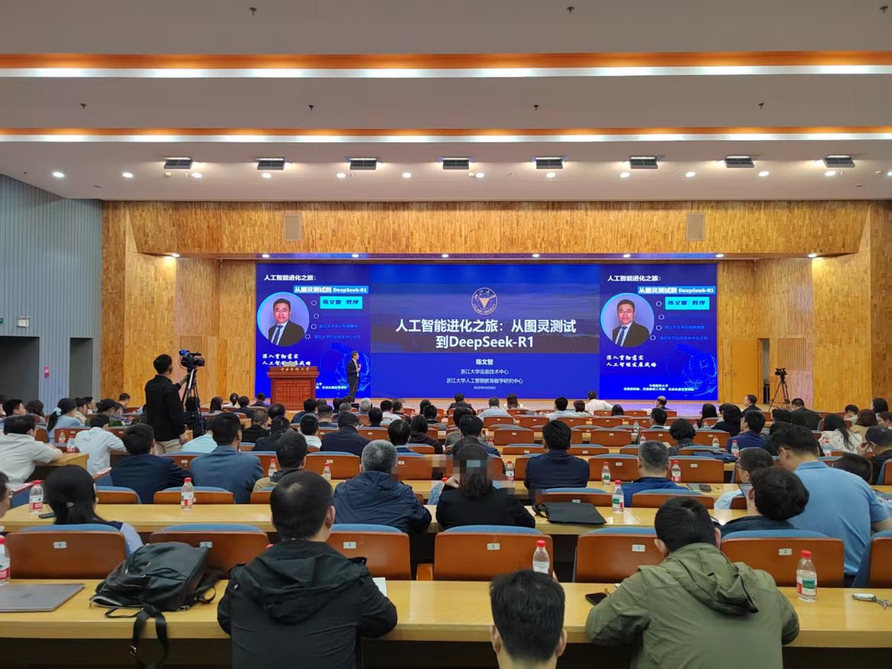 为助力我校教职工深入了解人工智能技术,加快人工智能与高等药学教育深度融合,4月9日上午,学校邀请浙江大学求是特聘教授、信息技术中心主任陈文智来校作专题辅导讲座。校党委副书记朱红,校党委副书记、纪委书记陈文恩,校党委常委、副校长姚和权出席报告会,全校教职员工以线上线下相结合的方式参加学习。
