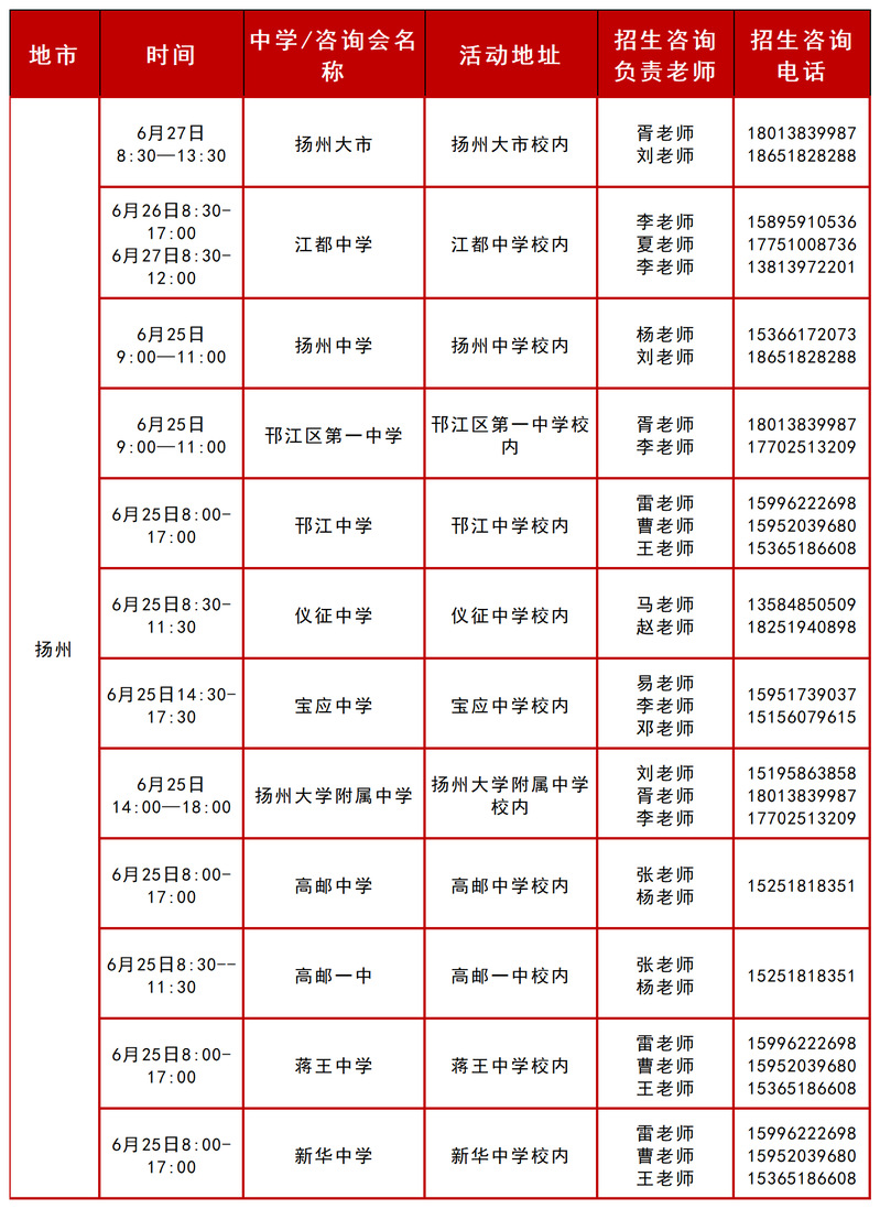 2025年扬州招生组行程安排