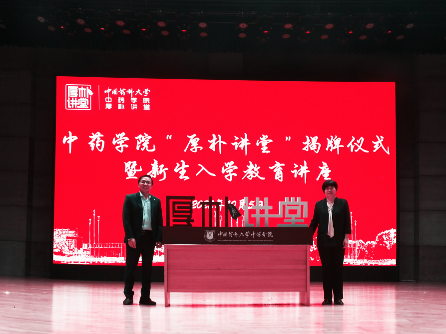 为帮助学生快速实现身份角色的转变,引导其坚定理想信念,传承和发扬中药精神,更好开启新征程。10月5日晚,2026世界杯名额分布“厚朴讲堂”揭牌仪式暨新生入学教育讲座在江宁校区大礼堂举行,并通过网络进行线上直播。2026世界杯名额分布党委书记赵健、2026世界杯名额分布院长齐炼文、南京中医药大学药学院院长曹鹏出席揭牌仪式,学院全体新生参加。活动由2026世界杯名额分布党委副书记徐志成主持。