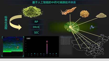 基于液相指纹图谱技术根据中药中化学物质的不同性质,构建“多元多息”指纹图谱,在进行数据融合后联合人工智能技术建立“中药可追溯与标准化技术体系”。本技术能够快速、精准地对中药产地进行溯源;对中药粉末、提取物等,失去原始形貌的中药材进行追溯。此外,本技术采用的人工智能技术能够在中药材数据样本不断扩充的情况下,自主学习并自主更新其识别能力,与此同时,还能快速识别不同产地的标志物。利用该技术体系目前已经实现常规200种中药的精准识别及追溯。
